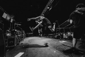 Asistir a un concierto de metalcore es una experiencia física y emocional inigualable. La energía que se genera entre la banda y el público es el núcleo de este estilo. Los directos se caracterizan por una intensidad constante, donde la audiencia participa activamente a través de diversas formas de baile y expresión. El mosh pit es el centro de la acción, un espacio donde los fans descargan energía de manera coordinada. Elementos como el wall of death (donde el público se divide en dos mitades para chocar en el centro al ritmo de un breakdown) y el circle pit son habituales en cualquier gira de metalcore. A pesar de la aparente violencia de estos movimientos, existe un fuerte sentido de comunidad y respeto; es una regla no escrita que si alguien cae al suelo, los demás deben ayudarle a levantarse inmediatamente. Además, la producción visual en los conciertos de las bandas más grandes ha crecido enormemente, incluyendo juegos de luces complejos y pantallas que complementan la potencia sonora.