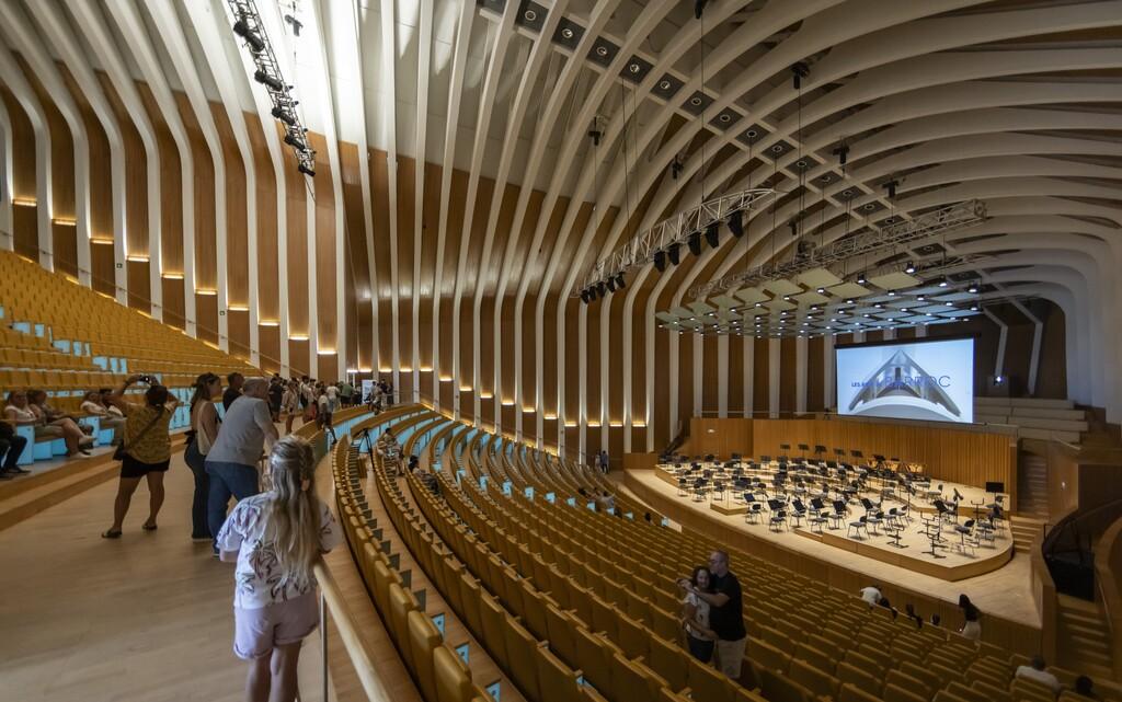 El Auditori es la sala más grande del Palau de les Arts, diseñada para albergar grandes conciertos sinfónicos. Aunque el aforo exacto puede variar según la configuración, está pensado para acoger a miles de espectadores. El ambiente es solemne y elegante, acorde con la calidad de las producciones que acoge. La acústica es su característica más destacada: el diseño interior está meticulosamente estudiado para garantizar una dispersión del sonido perfecta, haciendo de cada nota una experiencia inmersiva, especialmente para la música orquestal y coral.