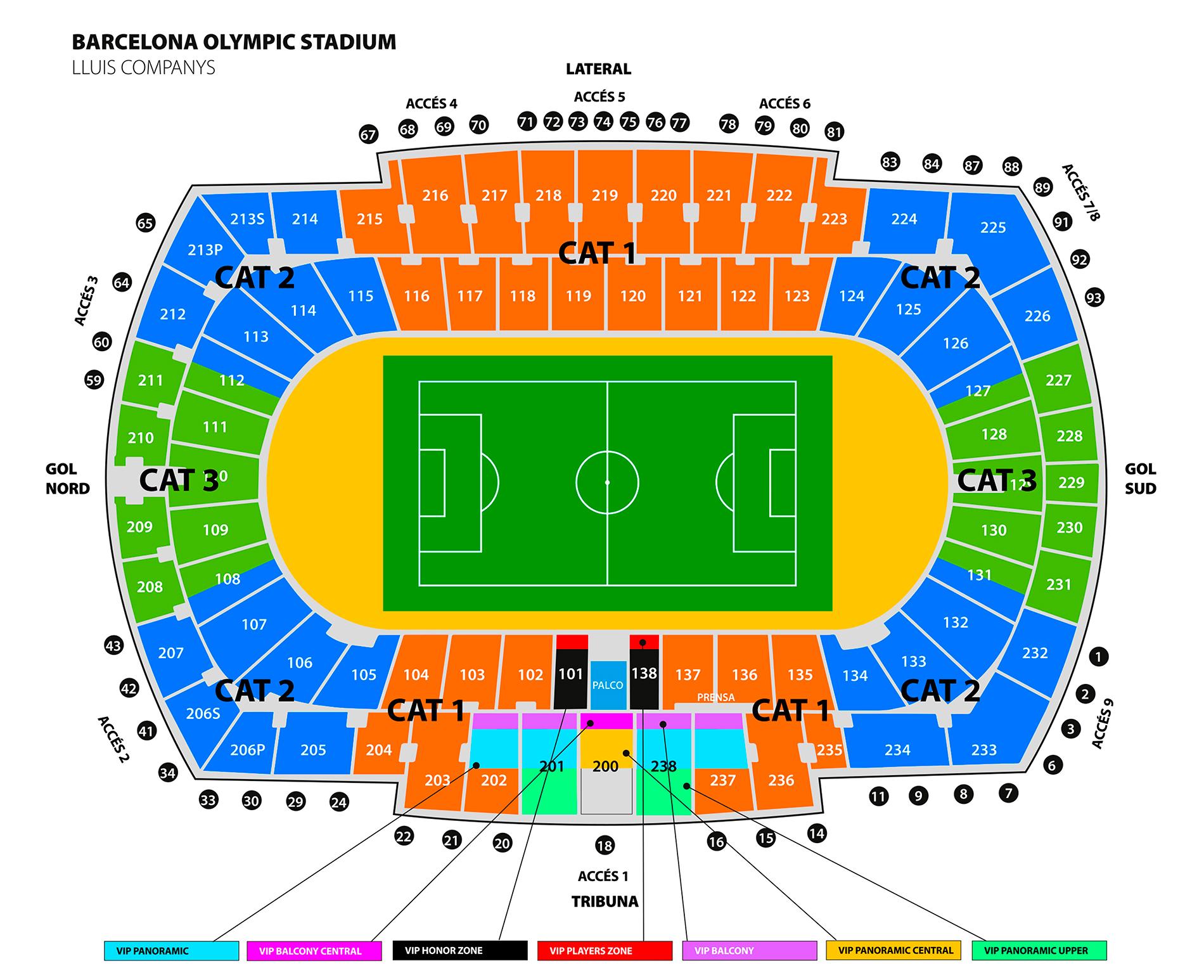 El Estadi Olímpic Lluís Companys se encuentra en Avinguda de l’Estadi, 69, en el distrito de Sants-Montjuïc. Su posición elevada en la montaña le confiere un ambiente especial, aunque requiere una planificación cuidadosa para el acceso. Está rodeado por otras instalaciones olímpicas y zonas verdes, creando un entorno amplio y abierto, ideal para gestionar grandes flujos de público.