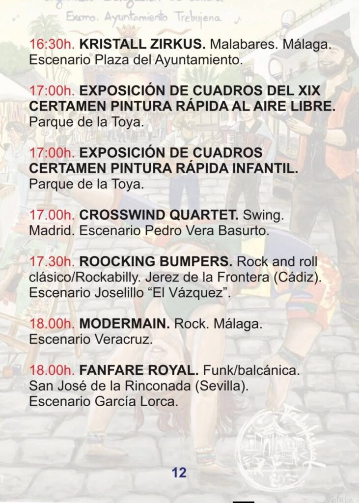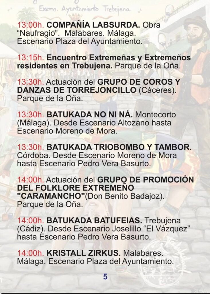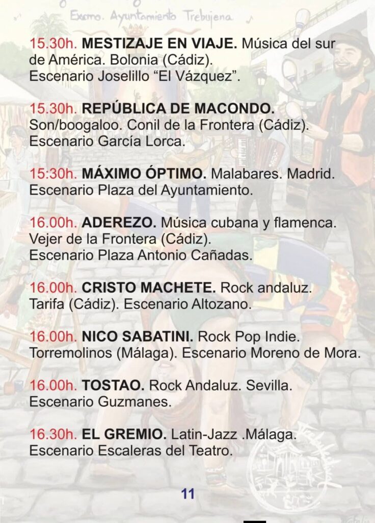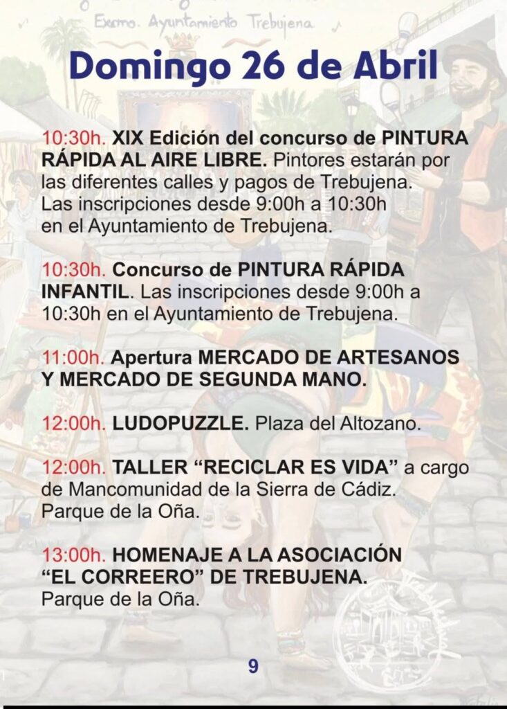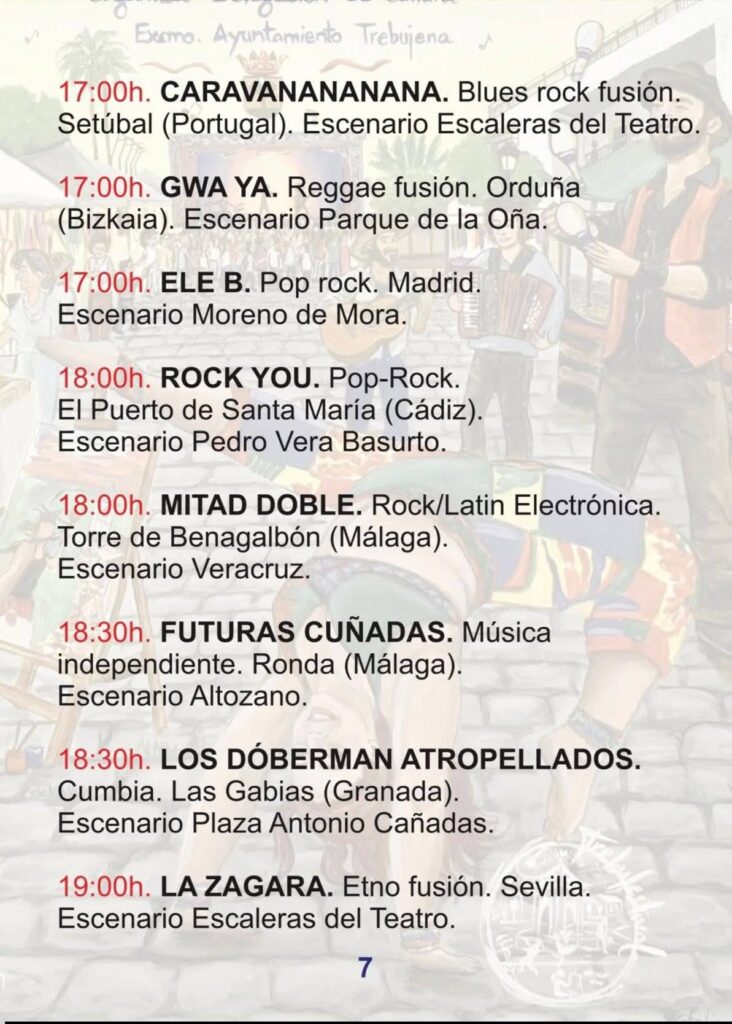 El viernes 24 arranca la actividad con la apertura del Mercado de Artesanos a las 16:00h. El sábado 25 viviremos el momento más emotivo con el Homenaje a Robe e Iniesta, un tributo legendario que une las raíces de Extremadura con el espíritu de Trebujena. Finalmente, el domingo 26 se celebrará el Certamen de Música Callejera y el gran fin de fiesta con el concierto de Amparanoia a las 20:00h en la Plaza del Ayuntamiento.